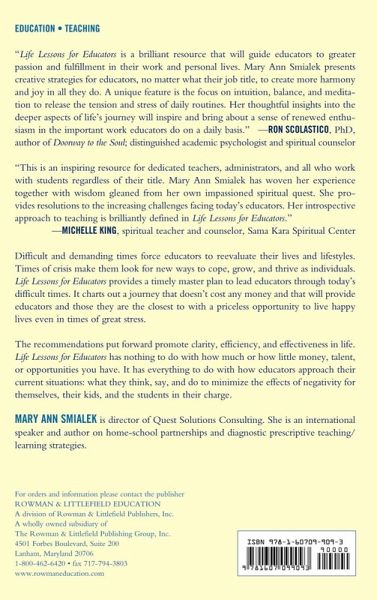 There are few times in our lifetime that we have the opportunity to view our life differently. Lesson Plans for Educators provides the chance to revisit, refocus, and truly look inside ourselves. Mary Ann Smialek gives us the tools to examine our values and consciously unshackle our thinking to a more positive outlook on a daily basis. She answers our innermost questions about knowing our authentic self, a paradigm shift in one's reality, along with the steps necessary to produce significant positive life changes. This is a must-read for all educators. -- John Kenneth Amato, PhD, international president of Phi Delta Kappa This is an inspiring resource for dedicated teachers and administrators, school guidance counselors, psychologists, speech, physical, and occupational therapists and all who work with students. Mary Ann Smialek has woven together her experience with wisdom gleamed from her own impassioned spiritual quest. She provides resolutions for the increasing challenges facing today's educators. Her introspective approach to teaching is so brilliantly defined in Lesson Plans for Educators. -- Michelle King, spiritual teacher and counselor, Sama Kara Spiritual Center Lesson Plans for Educators is a brilliant resource that will guide educators to greater passion and fulfillment in their work and personal lives. Mary Ann Smialek presents creative strategies for educators, no matter what their job title, to create more harmony and joy in all they do. A unique feature is the focus on intuition, balance, and meditation to release the tension and stress of daily routines. Her thoughtful insights into the deeper aspects of life's journey will inspire and bring about a sense of renewed enthusiasm in the important work educators do on a daily basis. -- Ron Scolastico, PhD, author of Doorway to the Soul; distinguished academic psychologist and spiritual counselor Mary Ann Smialek offers a holistic approach to reflective teaching. In Lesson Plans for Educators she takes you on a journey of self-discovery, reflection, and validation. She presents opportunities for both new and seasoned practitioners to live their best life personally and professionally. Each chapter offers renewed occasions to celebrate accomplishments and look forward to improved ways of doing things with enjoyment and enthusiasm. This is a must-read for all educators who want to find joy in their life and profession. -- Mary Jo Pierantozzi, assistant professor, School of Education, Gwynedd-Mercy College