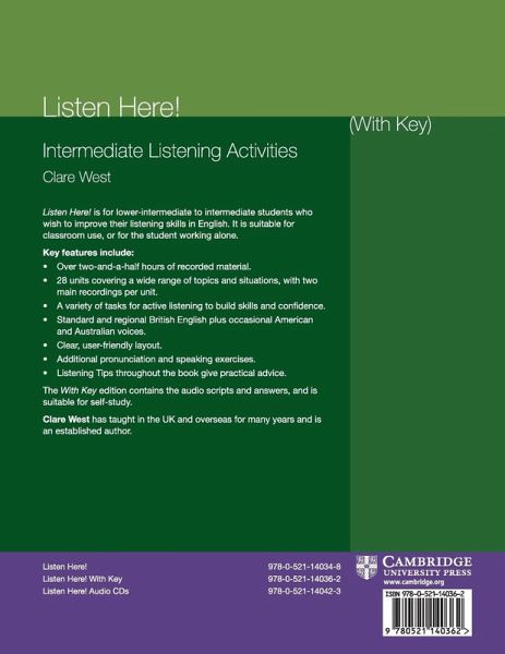 For lower-intermediate to intermediate students who wish to improve their listening skills in English. Suitable for classroom use, or for self study. Includes 28 units covering a wide range of topics and situations and tasks for active listening, to build skills and confidence. The With Key edition contains the CD scripts and answers.