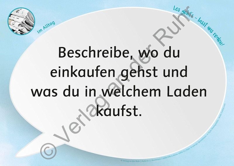 Unterrichtsmaterial für Lehrer an weiterführenden Schulen und Förderschulen, Fächer: DaZ & DaF, Klasse 5-10 sowie für die Jugendarbeit +++ Hochkonzentriertes Aus-dem-Fenster-Schauen, betretenes Schweigen oder einsilbige Antworten: Schüler mit Deutsch als Zweit- oder Fremdsprache trauen sich meist kaum ans freie Sprechen. Mit diesen abwechslungsreichen und motivierenden Redeimpulsen schaffen Sie zuverlässig Abhilfe! Die 90 farbigen A4-Karten bauen Hemmungen gekonnt ab und ermuntern die DaZ- und DaF-Lerner zum selbstständigen Formulieren in der neuen Sprache. Alle Sprachimpulse haben einen klaren Bezug zur Lebenswelt der Jugendlichen und sind acht verschiedenen, farbig gekennzeichneten Kategorien zugeordnet: "Familie", "Die alte und die neue Heimat", "Hobbys", "Wünsche und Ziele", "Schule und Berufswahl", "Im Alltag", "Vorgänge", "Frauen und Männer" sowie "Typisch deutsch". Durch die Fragen, Statements und Satzanfänge entstehen authentische Dialoge und Redebeiträge, die die Schülermotivieren und voranbringen. Die praktischen Karten für (mehr) freies Sprechen sind auf das Sprachniveau A2-B1 ausgelegt und in jeder Unterrichtsphase flexibel einsetzbar. Von "Erzähle, was du an deinen Geschwistern besonders magst." über "Beschreibe, wie dein Lieblingsessen zubereitet wird!" bis "Zu welchem Arzt gehst du bei welcher Krankheit?": Mit diesen Karten haben Sie immer schöne, schnelle Sprachförderideen zur Hand - und locken auch schüchterne Sprachlerner ganz leicht aus der Reserve!