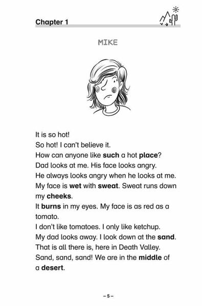Ein Jugendroman über Familie und Verlust, besonders geeignet als Klassenlektüre an Förderschulen, Hauptschulen, Realschulen und Gesamtschulen, Fach: Englisch; Klasse: 7-10 +++Informationen zum Roman: Mike hasst Hitze, Sand und Veränderungen. Als er mit seinem Vater, seiner Schwester Elly und der neuen Freundin seines Vaters im Death Valley Urlaub macht, überkommen ihn die Herausforderungen der neuen Familiensituation und die Trauer über den Verlust seiner Mutter - Mike rennt in die Wüste. Wird er den Weg zurückfinden?Sprachniveau: A1Informationen zur Reihe: Die leichten Englisch-Lektüren der Reihe K.L.A.R. sind die ideale Schullektüre für den Englischunterricht an Förderschulen, Hauptschulen, Realschulen und Gesamtschulen. Speziell für leseschwache Schüler und Schülerinnen konzipiert, überzeugen sie durch kurze Kapitel, ein leicht verständliches Vokabular und spannende Themen aus der Lebenswelt der Jugendlichen ab 12 Jahren. Die aktuellen Jugendbücher sind somit bestens geeignet zur Leseförderung im Englischunterricht der Sekundarstufe I und bieten einen motivierenden Einstieg in die Welt der Literatur.Passend zu den Büchern gibt es ergänzendes Begleitmaterial zur Arbeit mit der Lektüre.