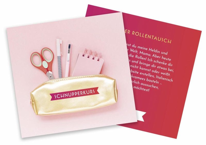 Personalisiere das Geschenk und schreibe 5 Gutscheine selbstGemeinsame Zeit muss nicht viel kosten: Ideen kommen ohne viel Geld ausIdeales Geschenk zum Muttertag, Geburtstag, Weltfrauentag oder einfach soErlebt Mikroabenteuer, gründet einen Buchclub für zwei, besucht Lieblingsorte, entdeckt kreative Talente, lernt euch noch besser kennen und habt viel Spaß