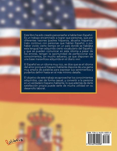 Nuestro libro ha sido creado para enseñar a hablar bien Español. Este trabajo está encaminado a lograr que personas, que por diferentes razonas (padres hispanos, abuelos hispanos, trato continuo con personas que hablan Español, o por haber vivido cierto tiempo en un país donde se hablaba esta lengua) han adquirido cierto vocabulario del Español, y que se pueden comunicar en este idioma a pesar de los errores, tengan la oportunidad de perfeccionar sus conocimientos, sin mucho esfuerzo, ya que disponen de una base maravillosa adquirida en el diario vivir. El Español es un idioma muy rico, se dice que es el idioma del amor porque el hispano hablante dispone de una gama muy amplia de palabras para expresar sus sentimientos y poderlos definir hasta en el más mínimo detalle. El objetivo de este trabajo es aprovechar los conocimientos adquiridos, casi de forma casual, y convertir a la persona en un verdadero hispano-hablante, lo que además de darle satisfacción propia puede serle de mucha utilidad en su desarrollo laboral.