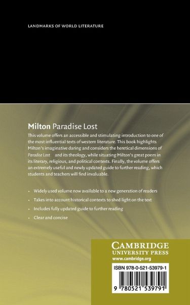 This volume offers an accessible and stimulating introduction to one of the most influential texts of western literature. This guide highlights Milton's imaginative daring as he boldly revises the epic tradition, brilliantly elaborates upon Genesis, and shapes his ambitious narrative in order to retell the story of the Fall. The book considers the heretical dimensions of Paradise Lost and its theology, while situating Milton's great poem in its literary, religious, and political contexts. A concluding chapter addresses the influence of Milton's sublime poem as a source of creative inspiration for later writers, from the Restoration to the Romantics. Finally, the volume offers an extremely useful and updated guide to further reading, which students will find invaluable.