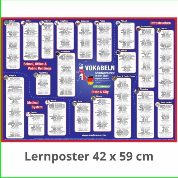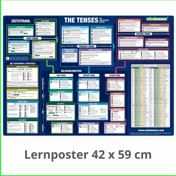Genial einfach: Lernposter 3er Set: Die englischen Zeiten & Wortarten, sowie Grundwortschatz EnglischDas Wesentliche strukturiert auf einen Blick:+ Mehr Lern-Motivation - Weniger Hausaufgaben-Stress+ Mehr Familien-Frieden1. Die englischen Zeiten Alle deutschen Zeiten auf einen Blick! Bildung & Anwendung der Zeiten mit Beispielsätzen Bildungsmatrix mit Farbcode Beispiele & Zusammenhänge - Gängige Ausnahmen Unregelmäßige Verben 2. Die englischen Wortarten auf einen Blick Darstellung & Definition der Wortarten Farbcode zur besseren Unterscheidung und Identifikation Wichtige Regeln & Ausnahmen Anschauliche Beispiele & Zusammenhänge 3. Der englische GrundwortschatzMehr als 600 Vokabelpaare aus dem öffentlichen Leben:Thematisch gegliedert und sortiert in 20 Kategorien aus 4 LebensbereichenVokabeln hirngerecht aufbereitet und strukturiertvorhandene Denkstrukturen verwenden (Infrastruktur -> Verkehr: Auto, Bus, fahren, parken, umsteigen, Haltestelle...)In der attraktiven & wiederverwendbaren GeschenkrolleAls visuelle Zusammenfassung ist es der ideale Begleiter, um schnell und effektiv prüfungsrelevantes Wissen zu erfassen.Genial einfach und endlich kapiert: Mehr AHHHHH....weniger OHHHH. Weniger Stress und bessere Noten.