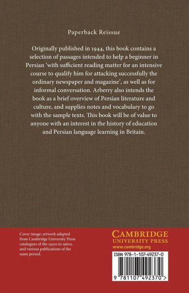 Originally published in 1944, this book contains a selection of passages intended to help a beginner in Persian 'with sufficient reading matter for an intensive course to qualify him for attacking successfully the ordinary newspaper and magazine', as well as for informal conversation. Arberry also intends the book as a brief overview of Persian literature and culture, and supplies notes and vocabulary to go with the sample texts. This book will be of value to anyone with an interest in the history of education and Persian language learning in Britain.