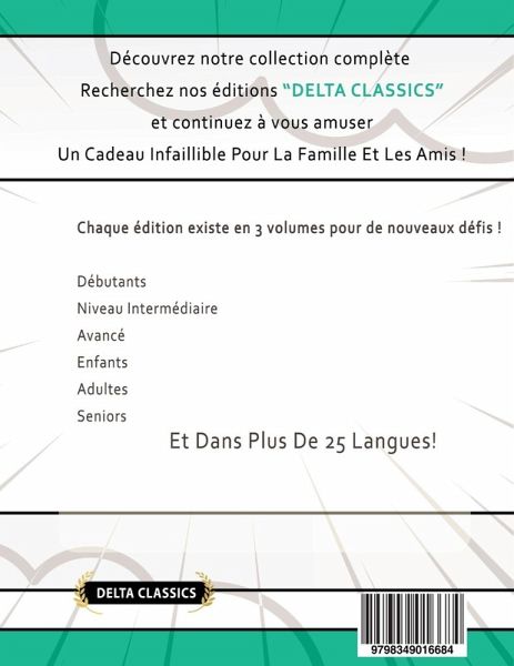 * DELTA CLASSICS - MOTS MÊLÉS EN CHINOIS NIVEAU INTERMÉDIAIRE, VOL.1 (GRANDS CARACTÈRES) - 100 Grilles De Jeux Des Plus Captivantes ! + BONUS SUPPLÉMENTAIRES Des Heures De Détente Avec Un Livre de Mots Mêlés de Qualité et Facile à Lire. Découvrez 100 Puzzles Anti-stress Pour Développer Un Esprit Clair Et Affuté ! Un Cadeau Idéal Pour Pratiquer Une Langue. Trouvez 2000 Mots Cachés En CHINOIS. Par DELTA CLASSICS, Un Leader Mondial Dans L'Édition de Livres de Jeux. Avec + de 40 Heures De Divertissement - Le Livre Que Vous Cherchiez : - IMPRIMÉ SUR DU PAPIER HAUTE QUALITÉ : L'encre ne traverse pas (surligneurs ou feutres) - 100 GRILLES AU FORMAT A4 : Conçues pour la meilleure lisibilité possible - POUR TOUT ÂGE (15-99 ANS) : Plus de 2000 mots sélectionnés avec soin - FEUILLETEZ : Pas de mauvaises surprises, parcourez le livre en cliquant sur la couverture - SOLUTIONS SIMPLIFIÉES : Solutions disponibles dans un format simple et clair - FACILE & INTERMÉDIAIRE : Suffisamment difficile pour s’amuser et simple pour être divertissant - CADEAUX SUPPLÉMENTAIRES : Découvrez des BONUS Exclusifs ! Le Meilleur Choix Pour Cultiver un Esprit Agile en s’Amusant ! ------- [ENGLISH] ------- Note: Some content in English might be missing due to length restrictions. * DELTA CLASSICS - AWESOME WORD SEARCHES IN CHINESE FOR ADULTS - VOL.1 - The Most Captivating Large Print Puzzles Available! + EXTRA FREEBIES INCLUDED Relax for Hours with this Easy to Read and Cleverly Crafted Puzzle Book! Enjoy a Premium Edition: 100 Stress-Relieving Puzzles to Promote a Sharp and Quick Brain! A Proven Gift to Practice Language. Hunt for over +2000 CHINESE Words in all Directions. From DELTA CLASSICS, a World Leader in Puzzle Book Publishing - A Delightful Time Guaranteed. With +40 Hours of Entertainment - This is The Book you were Looking for: - PRINTED ON HIGH-QUALITY PAPER: Use highlighters or pens, no bleed-through - LARGE PRINTS IN FULL PAGE FORMAT: Designed for the best readability possible - FUN FOR ALL AGES (15-99 YEARS): Enjoy a curated selection of +2000 words - BOOK PREVIEW AVAILABLE: No surprise, click on the cover to Look inside the book - QUICK FIND: Solutions in a clear and simple format at the end of the book - EASY & INTERMEDIATE LEVEL: Difficult enough to be challenging, easy enough to be addictive - EXTRA BONUS: Uncover our Exclusive Freebies Get it Now, Start Having Fun & Sharpen Your Brain