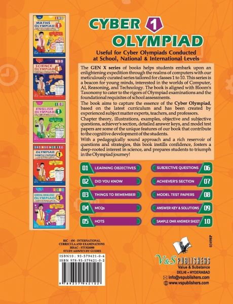 Developed by Professionals and Experienced Teachers from top schools across the country, the book has been divided into three sections namely Computers, Logical Reasoning and Achievers section. The concepts have been explained through examples, illustrations, and diagrams. To enhance the problem solving skills of students, Multiple Choice Questions (MCQs) with detailed solutions have been provided at the end of each chapter. A CD containing Study Chart for systematic preparation, Tips & Tricks to crack Cyber Olympiad, Pattern of exam, and links of Previous Years Papers is accompanied with this book. The book is recommended for various school level and competitive exams.