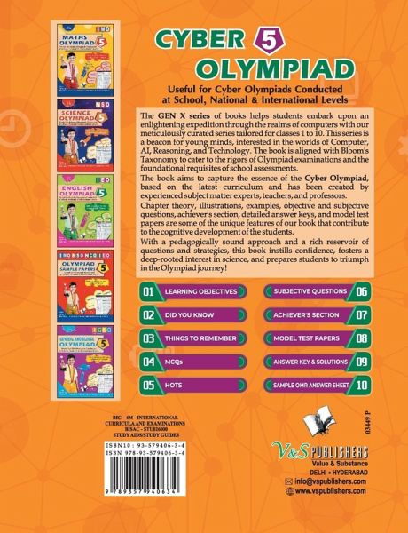 Developed by Professionals and Experienced Teachers from top schools across the country, the book has been divided into five sections namely Word Structure and Knowledge, Reading Comprehension, Spoken and Written Expressions, Achievers section, Model Papers. The concepts have been explained in brief through solved examples and Illustrations. To enhance the problem solving skills of candidates, Multiple Choice Questions (MCQs) with detailed solutions have been provided at the end of each chapter. Two Mock Test Papers have been provided for practice purpose. A CD containing Study Chart for systematic preparation, Tips & Tricks to crack English Olympiad, Pattern of exam, and links of Previous Years Papers is accompanied with this book. The book is recommended for various school level and competitive exams. #v&spublishers