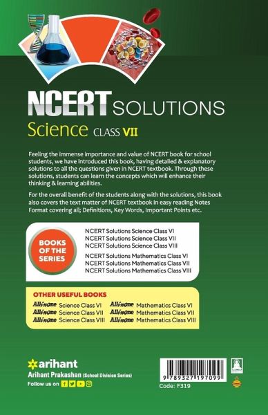 NCERT books are not only considered as best study materials for CBSE board exams but also for some highly competitive exams such as NEET, JEE (Main & Advance), etc. The series "NCERT SOLUTIONS" for class VI-XII offers a complete package of the syllabus along with well-explained chapters of every subject in a concise way. Here's reintroducing the freshly updated edition of NCERT Exercises' Solutions series "NCERT SOLUTIONS- SCIENCE" that has been consciously designed for class VII students. This book provides a complete solution to all the chapter exercises of the NCERT book to grasp the concepts easily and enhance thinking & learning abilities. Along with detailed explanations of solutions, the study material is covered in an easy reading notes format covering all definitions, keywords, etc. Intext Questions, Paheli & Boojho Questions and Chapter End Exercises are also provided with the selected NCERT Exemplar Problems. This book includes: A comprehensive Exercise solution book of NCERT Provides a complete solution to NCERT Science Detailed Explanations to understand each concept easily Study material is covered in an easy reading notes format Intext Questions, Paheli & Boojho Questions and Chapter End Exercises are provided Covers solutions of NCERT Exemplar Problems TABLE OF CONTENT: Nutrition in Plants, Nutrition in Animals, Fibre to Fabric, Heat, Acids, Bases and Salts, Physical and Chemical Changes, Weather, Climate and Adaptations of Animals to Climate, Winds, Storms and Cyclones, Soil, Respiration in Organisms, Transportation in Animals and Plants, Reproduction in Plants, Motion and Time, Electric Current and its Effects, Light, Water: A Precious Resource, Forests: Our Lifeline, Wastewater Story