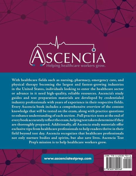 Introducing our updated for 2021 NHA Phlebotomy Exam Study Guide: Review Book with Practice Test Questions for the National Healthcareer Association Certified Phlebotomy Technician Examination! Ascencia Test Prep’s brand new, unofficial NHA Phlebotomy Exam Study Guide offers you current examples, graphics, and information relevant to your healthcare career. And, unlike other other study guides on the market, you’ll benefit from a quick yet total review of everything on the exam! There’s more: imagine having your test prep materials on your phone or tablet! Ascencia Test Prep’s NHA Phlebotomy Exam Study Guide comes with FREE practice questions, online flash cards, study "cheat" sheets, and 35 test tips, all available online. These easy to use materials will give you the edge you need to pass your exam the first time. The National Healthcareer Association was not involved in the creation or production of this product, is not in any way affiliated with Ascencia Test Prep, and does not sponsor or endorse this product. Ascencia Test Prep's NHA Phlebotomy Exam Study Guide offers you a full review of the subjects covered on the phlebotomy exam, test tips and strategies, real-world examples, and worked through practice problems. Our book covers: * Online Resources * Introduction * Anatomy and Physiology * Blood Specimen Collection * Non-Blood Specimen Collection * Specimen Handling, Transport and Processing * Laboratory Operations … and also includes 2 FULL practice tests, so that you will be ready on test day. About Ascencia Test Prep With healthcare fields such as nursing, pharmacy, emergency care, and physical therapy becoming the fastest and largest growing industries in the United States, individuals looking to enter the healthcare industry or rise in their field need high quality, reliable resources. Ascencia Test Prep's study guides and test preparation materials are developed by credentialed, industry professionals with years of experience in their respective fields. Every Ascencia book includes a comprehensive overview of the content knowledge that will be tested, along with practice questions for each section to enhance understanding. Full practice tests at the end of every book accurately reflect the exam, helping test takers determine if they are thoroughly prepared. Additionally, all Ascencia study materials offer exclusive tips from healthcare professionals to help readers thrive in their field beyond test day. Ascencia recognizes that healthcare professionals nurture bodies and spirits, and save lives. Ascencia Test Prep's
