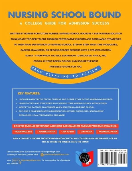 Do you want to become a nurse? Then you need the blueprint for success! Do you find the steps you need to take to get into nursing school daunting? Do you need help determining what order to complete all tasks required to move forward? Or are you looking for insider tips to help YOU succeed? Then this guide has you covered. Written by nurses for future nurses, this handbook offers you the tried-and-true steps you need to take to navigate the challenges you face. Get ready to learn how to pinpoint your dream school, then successfully apply and enroll! You can do this, and this book is designed to propel you forward! Nursing School Bound will teach you:The Future State of Nursing-and what that means for your career Pathways to a BSN Degree so you can make an informed decision on what route you should take Tips, Tools, and Advice to help you choose your starting point 6 Key Factors to Consider when selecting the right nursing school for you Invaluable information on nationally-accredited nursing programs And so much more! You'll even find a BONUS chapter inside covering Diversity. Your nursing dream starts today, even if you're up to three years out before you apply to nursing schools-learn more now! Scroll up and one-click buy your copy now and get started!