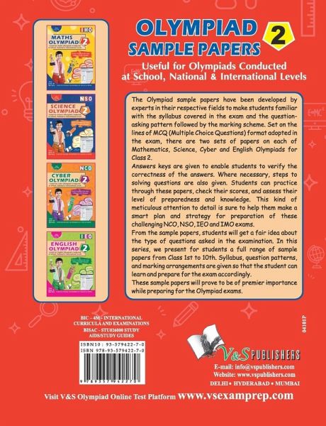 The Olympiad sample papers have been developed by experts in their respective fields to make students familiar with the syllabus covered in the exam and the questionasking pattern followed by the marking scheme. Set on the lines of MCQ (Multiple Choice Questions) format adopted in the exam, there are two sets of papers on each of Mathematics, Science, Cyber and English Olympiads for Class 10. Answers keys are given to enable students to verify the correctness of the answers. Where necessary, steps to solving questions are also given. Students can practice through these papers, check their scores, and assess their level of preparedness and knowledge. This kind of meticulous attention to detail is sure to help them make a smart plan and strategy for preparation of these challenging NCO, NSO, IEO and IMO exams. From the sample papers, students will get a fair idea about the type of questions asked in the examination. In this series, we present for students a full range of sample papers from Class 1st to 10th. Syllabus, question patterns, and marking arrangements are given so that the student can learn and prepare for the exam accordingly. These sample papers will prove to be of premier importance while preparing for the Olympiad exams.