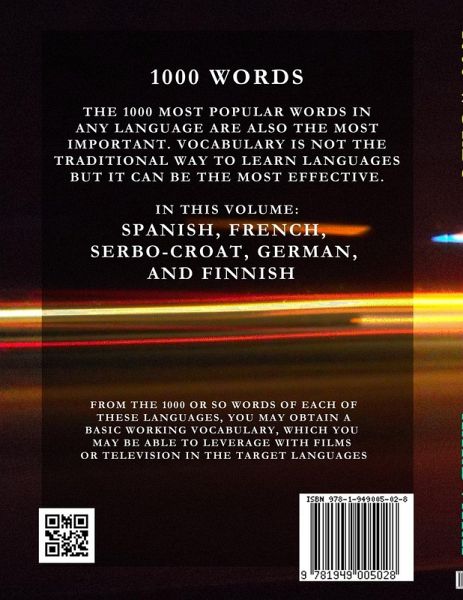 1000 Words is intended to kick-start your language learning by giving you a quick-and-dirty insight into the workings of your target language. It's not a grammar, a phrasebook, or a textbook. The 1000 most-used words in each language will give you the edge you need to make yourself understood while you engage in an immersion program or other intensive study program. You can also use film and television resources in the target language to refine your understanding and to give you an intuitive understanding of the grammar.