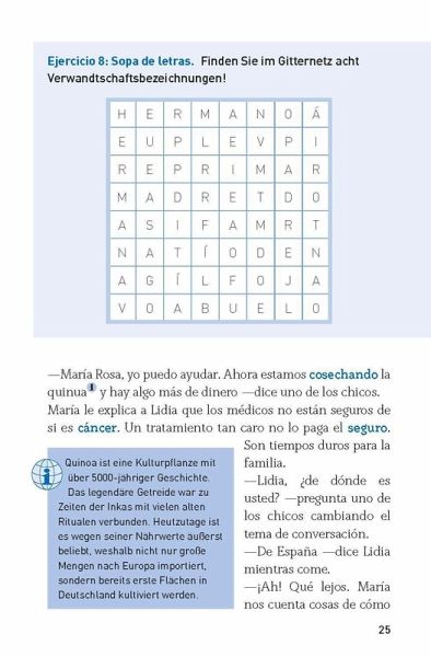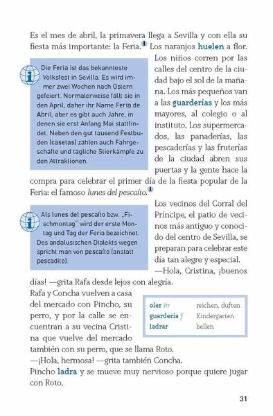 4 unterhaltsame Kurzgeschichten auf Spanisch: Die Sprachwelten entführen Sie in spanischsprachige Länder und vermitteln ein authentisches Gefühl für Land und Sprache. Muttersprachliche Autoren: Unsere Texte werden von Muttersprachlern speziell für das Niveau A1 verfasst und didaktisch aufbereitet. Über 40 textbezogene Übungen: Wortschatz- und Grammatikübungen steigern die Motivation und gliedern sich spielerisch in den Lesefluss ein. Vokabelangaben auf jeder Seite: Schwierige Wörter werden auf jeder Seite angegeben und sind ohne umständliches Blättern sofort griffbereit. Umfangreiches Glossar: Das alphabetische Glossar am Ende des Buches ermöglicht es, sämtliche im Text markierte Vokabeln nachzuschlagen. Infokästen zu Sprache und Grammatik: Zusätzliche Informationen, Tipps und Wissenswertes zu Sprache, Grammatik und Landeskunde runden die Compact Sprachwelten ab. Was fürs Auge: Das moderne, lockere Layout überzeugt sowohl auf dem Cover als auch im Innenteil.