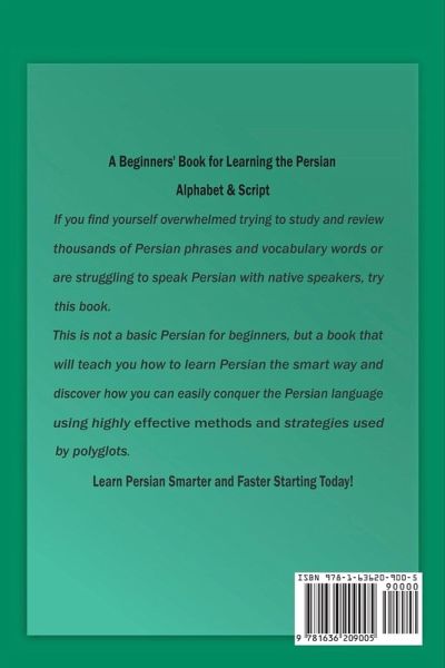 Discover the Smart Way to Learn Persian Alphabet & Script with this Beginners' Book! Designed to help you conquer the language using effective strategies employed by polyglots, this comprehensive guide teaches you the essential skills you need to master the 32-letter Persian alphabet, understand short sentences, and express your basic needs with ease. By delving into the Farsi writing system and gaining a solid foundation in expressions, you'll have the tools you need to unlock new opportunities for travel, work, and cultural exchange. Recognized as a "critically needed" language by the U.S. government, learning Persian can deepen your understanding of the lives and perspectives of new people, as well as open doors to the rich Persian culture. Inside this book is a powerful system for learning and retaining thousands of new Persian vocabulary words, whether you're a beginner or an intermediate learner. With clear and easy-to-follow lessons, you'll be able to make significant progress towards fluency and become a smarter, faster learner of Persian. Get started today and unleash your full potential in the language! Published By: Persian Bell www.persianbell.com