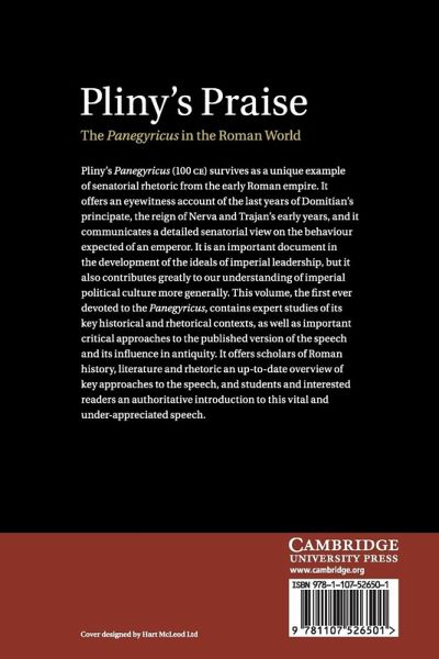 Pliny's Panegyricus (AD 100) survives as a unique example of senatorial rhetoric from the early Roman Empire. It offers an eyewitness account of the last years of Domitian's principate, the reign of Nerva and Trajan's early years, and it communicates a detailed senatorial view on the behaviour expected of an emperor. It is an important document in the development of the ideals of imperial leadership, but it also contributes greatly to our understanding of imperial political culture more generally. This volume, the first ever devoted to the Panegyricus, contains expert studies of its key historical and rhetorical contexts, as well as important critical approaches to the published version of the speech and its influence in antiquity. It offers scholars of Roman history, literature and rhetoric an up-to-date overview of key approaches to the speech, and students and interested readers an authoritative introduction to this vital and under-appreciated speech.