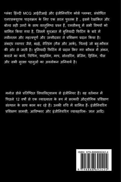 Plumber Hindi MCQ is a simple Book for ITI & Engineering Course Plumber, Revised NSQF Syllabus, It contains objective questions with underlined & bold correct answers MCQ covering all topics including all about the latest & Important about basic fitting in the beginning and the candidate imparted training on allied trades viz., carpenter, Welding (Gas & Arc), Masonry which leads to multi-skilling. In the basic fitting the skills imparted are marking, sawing, chipping, filing, measurement, soldering, brazing, drilling, grinding and observation of all safety aspects is mandatory. The accuracy achieved is of ±0.25 mm. The safety aspects covers components like OSH&E, PPE, Fire extinguisher, First Aid etc. Cutting Pipes in different angle. Joining of pipes of different diameter and angles by gas welding, thread cutting on different types of pipes.