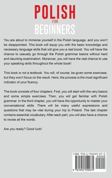 If you want to learn the Polish language without any previous knowledge, then keep reading... Wanting to learn the Polish language, but don't know how - or where - to start? If so, you've come to the right place. This book will give you an excellent introduction to the Polish language, and by starting with the very basics, the book will increase your knowledge step-by-step. The exercises provide you with a lot of practice in both writing and talking; many useful words and phrases are included for reference during your learning, and for a long time after. Many real-life conversations and situations included in this book make it your perfect companion on your learning journey. Here's just a fraction of what you'll learn:The basics, such as the Polish alphabet, numbers, and days of the week. Many useful verbs, and examples of how they are used in sentences. The grammar rules that apply to nouns and verbs. Basic Polish phrases to be used in conversations. Useful phrases at the hotel, in restaurants, or shops. Many, many different words for daily use. And much more! So, what are you waiting for? Grab this book now, and start learning Polish today!