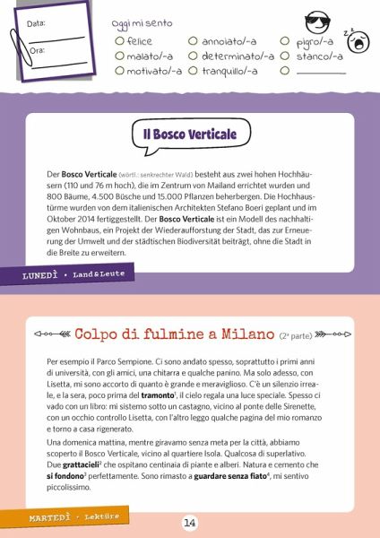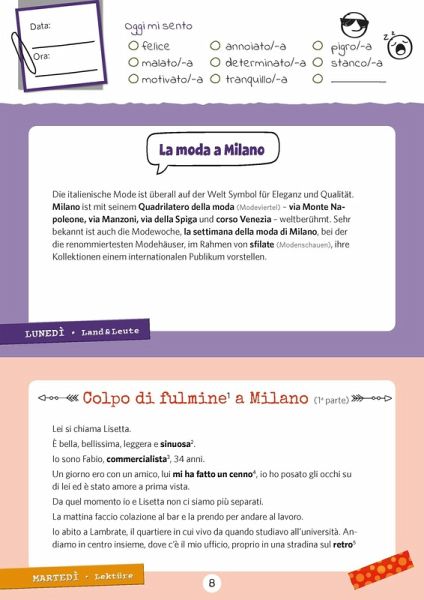 Interessantes über Land und Leute, unterhaltsame Lesetexte, Grammatik und Wortschatz, Witze und zum Abschluss fürs Wochenende etwas Kulinarisches: Nimm dir täglich deine kleine Auszeit und erweitere so effektiv deine Sprachkenntnisse. Mit täglichem Kreativteil zum Ausfüllen.