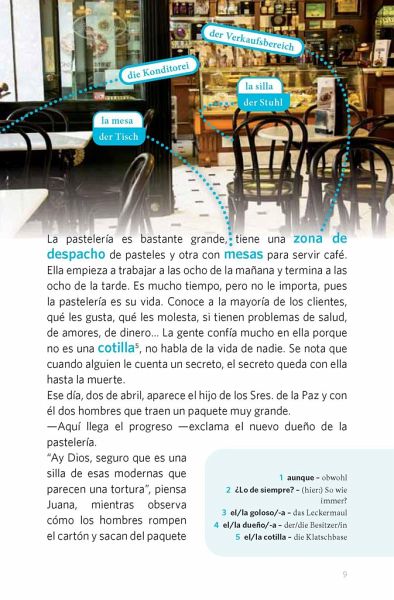 Sie lieben Spanien und alles, was dazugehört? Dann tauchen Sie in Ihre Lieblingsorte ein und frischen Sie ganz nebenbei Ihre Spanischkenntnisse auf!Mit 40 abwechslungsreichen Kurzgeschichten rund ums Land erweitern Sie spielend Ihre Lesekompetenz. Wortangaben auf jeder Seite helfen Ihnen dabei.Zahlreiche bebilderte Spezial-Seiten machen Wortschatzlernen zum reinsten Vergnügen.Texte und Bilder werden verknüpft und erleichtern so schnelles Lesen und Merken.Elementare bis fortgeschrittene Sprachkenntnisse (Niveau A2-B2)