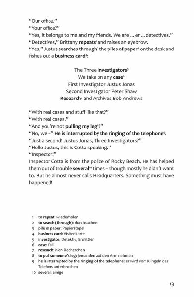 Tauche in ein spannendes Abenteuer der drei ??? ein und lerne mit den Übersetzungshilfen viele neue Vokabeln.Ab dem 3. Lernjahr an einer weiterführenden SchuleTrainiere Wortschatz, Verständnis und Grammatik mit zahlreichen Detektivübungen.Mit Scan2 Learn-App zum Buch: Höre die ganze Story als Hörbuch an.