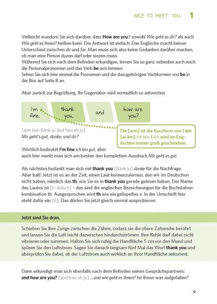 Stein auf Stein: In diesem Sprachkurs lernen Sie englische Wörter wie Bausteine zu verwenden. So können Sie sehr einfach selbst neue Sätze auf Englisch bilden.Ohne Grammatikpauken: Grammatik wird nur am Rande behandelt. Alle englischen Wörter und Sätze werden übersetzt und erklärt.Einfach mitreden: Die vereinfachte Lautschrift und die vertonten Beispiele zeigen Ihnen die richtige Aussprache.