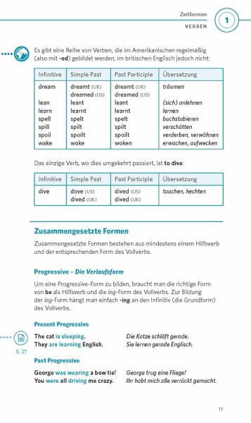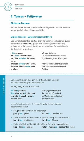 Finden: Alle wichtigen Regeln und Ausnahmen der englischen Grammatik werden behandelt. Das Stichwortregister hilft Ihnen, schnell zum gewünschten Thema zu gelangen.Verstehen: Einfache Erklärungen und zahlreiche Beispiele helfen Ihnen, die Grammatik zu verstehen.Merken: Das Allerwichtigste zu einem Thema finden Sie in Kurzübersichten zusammengefasst. So hilft Ihnen das Leicht-Merk-System, die Grammatik schneller zu erfassen und sich die Regeln einfacher zu merken.Mit Übungsmaterial als PDF in der Scan2Learn-App.
