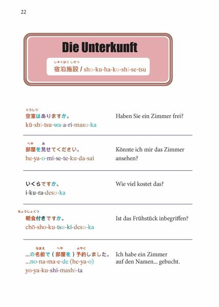 Mit landestypischen Illustrationen, Szenen und Schaubildern, die dich beim Lernen unterstützen.Die wichtigsten Wörter und Sätze, die du brauchst, um sofort loszulegen.Mit einfachen Dialogen die häufigsten Alltagssituationen spielend meistern.Für einen schnellen Lernerfolg: Mit einer innovativen Farbcodierung, die dir hilft, die japanischen Sätze mühelos zu entschlüsseln.
