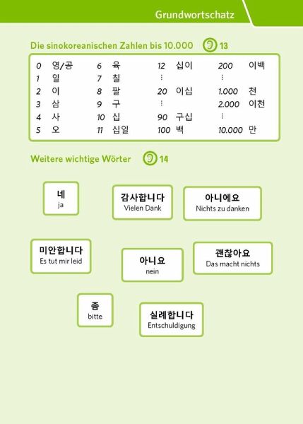 In 25 Mini-Lektionen lernen Sie alles, was Sie für die ersten Gespräche auf Koreanisch brauchen.Die MITREDEN!-Seiten geben Ihnen den Überblick über das Allerwichtigste, damit Sie schon nach kurzer Zeit mitreden können.Extra: Umfangreicher Audio-Download zum Erlernen der koreanischen Aussprache.