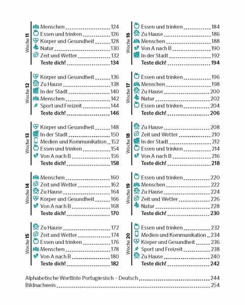 Mit nur 5 Wörtern am Tag die wichtigsten 500 portugiesischen Wörter lernenSpielerisch leicht und so, wie es dir passt - mit kleinen Portionen und einfachen MethodenMit wöchentlichen Tests deinen Lernstand im Blick behalten