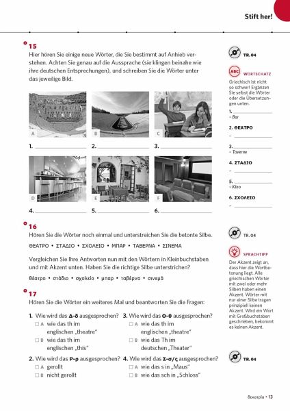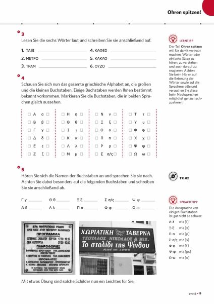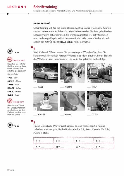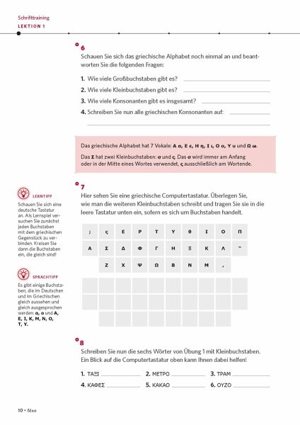 Ihr Ziel: Griechisch sprechen, verstehen und schreiben können - schnell und effektiv!Unsere Methode: Sie lernen in kleinen Portionen und werden in abwechslungsreichen Übungen aktiv gefordert. Zwischendurch können Sie Ihr Wissen mit Online-Tests überprüfen. Wenn Sie wollen, reden Sie mit diesem Griechisch-Intensivkurs nach vier Wochen schon richtig mit.Ihr Vorteil: Alles, was Sie zum Lernen brauchen, finden Sie in diesem Kurs. Kompakte Erklärungen, authentische Hörtexte und zahlreiche Übungen zum Sprechen, Hören und Schreiben führen Sie schnell zum Ziel.Für alle Anfänger und Wiedereinsteiger, die Griechisch schnell und zielgerichtet lernen möchten (A1-A2)