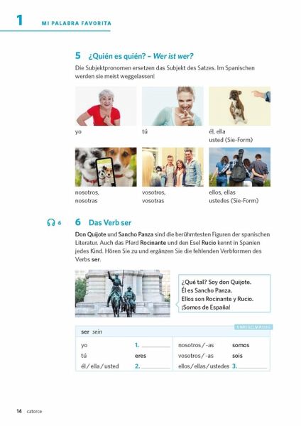 Starten Sie den Sprachkurs mit einem umfangreichen Aussprachetraining, um die spanische Aussprache durch Hören und Mitsprechen zu erlernen. Es folgen 20 strukturierte Lektionen in je drei Schritten: