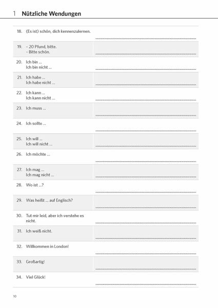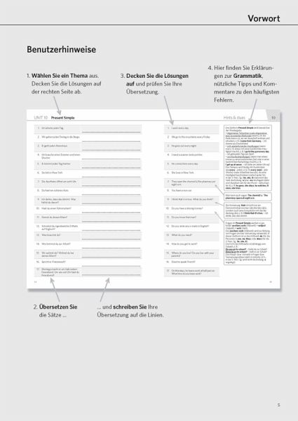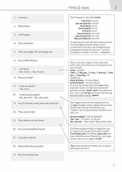 Lernen Sie Grammatik einfach und schnell, indem Sie authentische Sätze aus dem Alltag übersetzen.Erweitern Sie Ihren Wortschatz automatisch beim Übersetzen.Grammatik der Stufe A1 wird in überschaubaren Portionen erklärt, z. B. die Verben to be und to have, present tense, Possessivpronomen, gerund, Konjunktionen und vieles mehrNiveau A1: Erste Grundkenntnisse