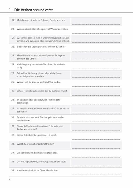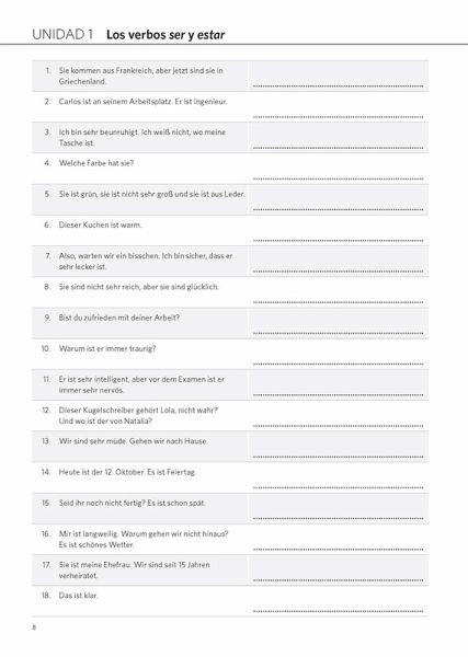 Lernen Sie Grammatik einfach und schnell, indem Sie authentische Sätze aus dem Alltag übersetzen.Erweitern Sie Ihren Spanisch-Wortschatz automatisch beim Übersetzen.Grammatik der Stufe A2 wird in überschaubaren Portionen erklärt, z. B. Indefinitpronomen, pretérito perfecto, direkte und indirekte Objektpronomen ...Niveau A2: Elementare Grundkenntnisse