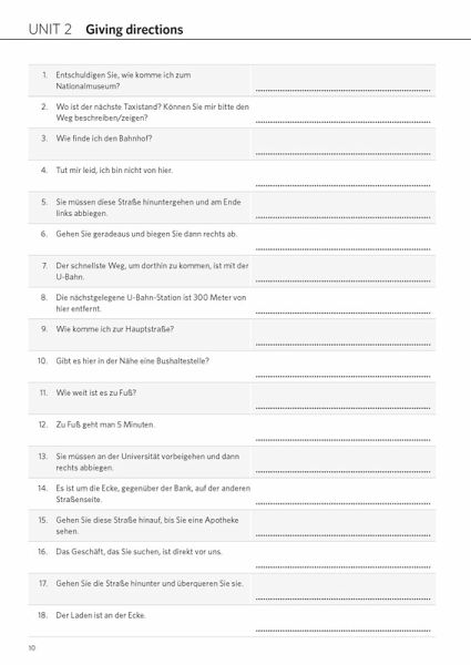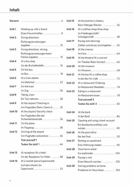 Gewinnen Sie Selbstvertrauen im täglichen Umgang mit der englischen Sprache.Übersetzen Sie authentische, lebendige Sätze aus dem Alltag, wie z. B. Freunde treffen, beim Check-in am Flughafen, im Restaurant, beim Arzt und viele viele mehr ...Zusätzliche Tipps und Wortschatz helfen beim Übersetzen.Let's practise! In jedem Kapitel gibt es Anregungen, wie man das Erlernte üben kann.Niveau A2-B1: Elementare Grundkenntnisse bis moderate Sprachkenntnisse