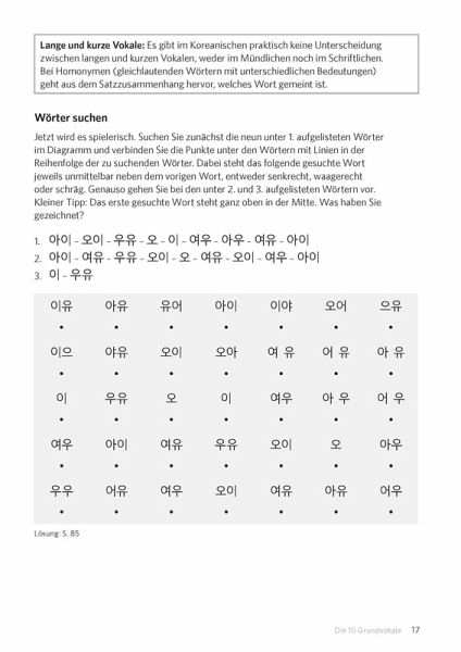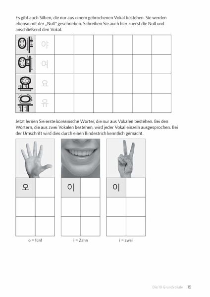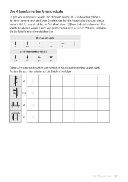 Lernen Sie Schritt für Schritt das koreanische Alphabet - vom einfachen Nachzeichnen bis zum selbstständigen Schreiben.Pfeile für die Schreibrichtung und Nummerierungen zeigen Ihnen die einzelnen Schritte beim Schreiben der Buchstaben an.Mit Lernkärtchen zum Ausschneiden - damit Sie lernen können, wann und wo immer Sie wollen.