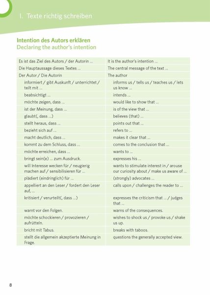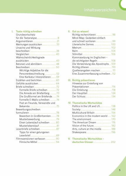 Ideal für Oberstufe, Abitur und StudiumNützliche Formulierungen für englische Texte, z.B. Aufsätze, Leserbriefe, Bewerbungsschreiben, Zusammenfassungen, Textanalysen oder PräsentationenExtra: Überzeuge in Präsentationen und trainiere die korrekte Aussprache - mit MP3-Dateien zum kostenlosen Download!Deckt die wichtigsten Abi-Themen ab und enthält ausführliche Wortschätze für die Themen in der Oberstufe, z.B. The American Dream, Politics in the UK and USMit zahlreichen Tipps z.B. zu Zeichensetzung, Zitierregeln, Stilmitteln und vieles mehr