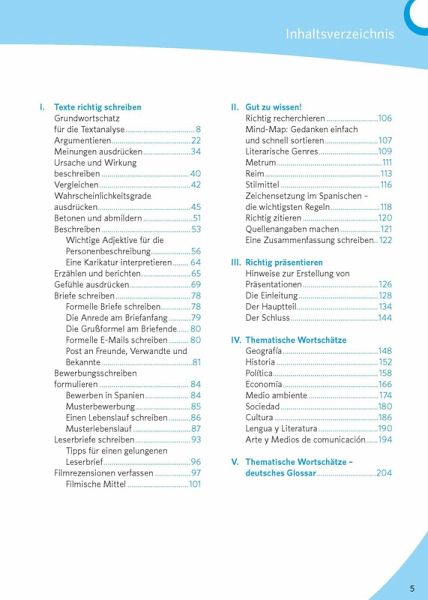 Nützliche Formulierungen für spanische Texte, z.B. Aufsätze, Leserbriefe, Bewerbungsschreiben, Zusammenfassungen, Textanalysen oder PräsentationenDeckt die wichtigsten Abi-Themen ab und enthält ausführliche Wortschätze für die Themen in der OberstufeEnthält zahlreiche Infofenster mit praktischen Tipps, z.B. zu Zeichensetzung und Zitierregeln