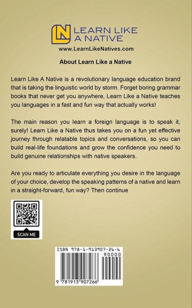 Immerse Yourself in Learning Brazilian Portuguese with Short Stories that Make the Language Come Alive & Easy to Learn! Want to learn Brazilian Portuguese the easiest and most exciting way possible? You came to the right place! Learning a second language is a great mental exercise if you want to create new neural pathways in your brain, so you can stay quick and sharp. Plus, learning a widely spoken language - Portuguese in particular - can open up a myriad of new opportunities for you in both life and work. One great obstacle that English speakers face when learning Portuguese is that they are in an environment where they can't fully immerse themselves in the language learning process. And that's why "Portuguese Short Stories for Beginners" by Learn Like a Native is perfect for beginners like you! "Portuguese Short Stories for Beginners" harnesses the power of a great tale in fast-tracking your learning process. It has several uniquely structured Portuguese-to-English short stories that are saturated with over 100 simple, easy-to-digest dialogues and daily used phrases, so you can seamlessly learn the language, even as you drive towards work! In the stories within, you will see people speaking to each other, going through daily life situations, and using the most common, helpful words and phrases in Portuguese. Learn Like a Native crafted this book with beginners in mind. Here is where you will find simple yet stimulating Portuguese language usage that is mostly in the present tense, so you will be able to effectively focus on dialogues and root verbs, as well as effortlessly understand and find patterns in subject-verb agreement. Over the course of this fun & game-changing guide, beginners like you will: · Effortlessly learn basic Portuguese with the help of cleverly structured short stories for beginners · Quickly absorb Portuguese terms for possessing common everyday objects · Cleverly incorporate prepositions and common present tense verbs for any situation · Easily relay your emotions, questions, likes, and dislikes in Portuguese anytime, anywhere · And so much more! Forget about boring lectures on grammar and endless vocabulary lists. With the help of this book, English speakers like you can easily learn Brazilian Portuguese and immerse themselves in it without having to leave the country! Scroll up, add this book to your library, and Start Learning Portuguese Today! P.S. Get the first ebook of the series FOR FREE at LearnLikeNatives.com