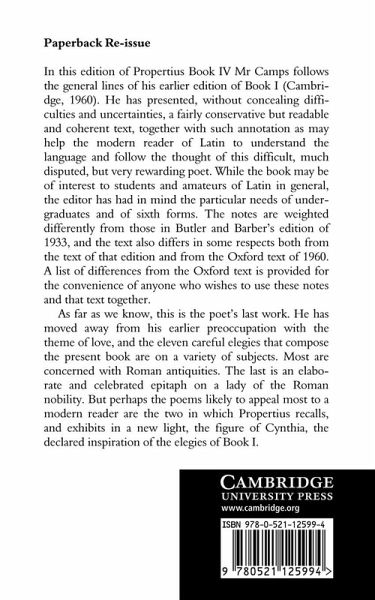 In this edition of Propertius Book IV, Camps follows the general lines of his earlier edition of Book I (Cambridge, 1960).