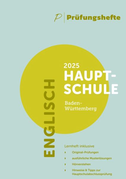 Unser Lernheft für das Fach Englisch bereitet dich perfekt auf deinen Hauptschulabschluss 2025 in Baden-Württemberg vor! In dem Heft erhältst du Originalprüfungen aus den letzten vier Jahren im echten Prüfungsstil sowie umfangreiche Musterlösungen mit Tipps und Hinweisen zur Bearbeitung.Alle Infos auf einen BlickVorbereitung auf die schriftliche Prüfung zum Hauptschulabschluss in Englisch Originalprüfungen aus 2021, 2022, 2023 und 2024 ausführliche Lösungen Bestandteile des Lernpakets Bei dem Prüfungsheft handelt es sich um ein Lernheft aus 4 Bestandteilen:Original-Prüfung 2021, 2022, 2023, 2024 Musterlösungen für alle Prüfungen Motivation mit Infos zur Prüfung Checkliste/Lernplan für alle prüfungsrelevanten Themen