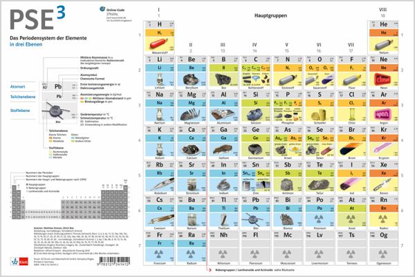 Der Elementbegriff wird im PSE³ auf drei Ebenen repräsentiert: Atomart, Teilchenebene und Stoffebene. Die jeder Ebene zugeordneten physikalischen Daten ermöglichen eine Vielzahl von kompetenzorientierten Aufgaben.