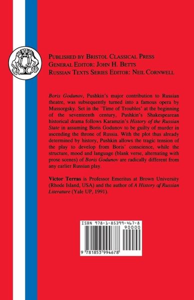 Boris Godunov, Pushkin's major contribution to Russian theatre , was subsequently turned into a famous opera by Mussorgsky. Set in the 'Time of Troubles' at the beginning of the seventeenth century, Pushkin's Shakespearean historical drama follows Karmzin's history of the Russian State, in assuming Boris Godunov to be guilty of murder in ascending the throne of Russia. With the plot thus already determined by history, Pushkin allows the tragic tension of the play to develop from Boris's conscience, while the structure, mood and language (blank verse, alternating with prose scenes) of Boris Gudanov are radically different to any earlier Russian play. This edition of Pushkin's tragedy Boris Godunov is part of the Russian Texts series, designed to meet the needs of the A Level and undergraduate Russian language students. The text is complete with English notes and vocabulary, and an introduction.