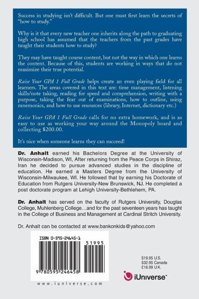 Success in studing isn't difficult. But one must first learn the secrets of "how to study." This book helps create an even playing field for all players. The book covers: time management, listening skills/note taking, reading for speed and comprehension, writing with a purpose, taking the fear out of examinations, mnemonics, outlining, and using resources (library, Internet, dictionary etc.) This book helps students to know that they can succeed, and raises grade point averages at least one full grade.