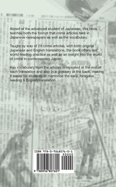 Aimed at the advanced student of Japanese, this book teaches both the format that crime articles take in Japanese newspapers as well as the vocabulary. Taught by way of 29 crime articles, with both original Japanese and English translations, the book offers real-world reading practice as well as an insight into the world of crime in contemporary Japan. Key vocabulary from the articles is repeated at the end of each translation and also in a glossary at the back, making it easier for students to memorise the kanji, hiragana reading & English translation.