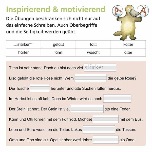 Das Schnabeltier begleitet die Schülerinnen und Schüler durch alle Problemstellen der Rechtschreibung.