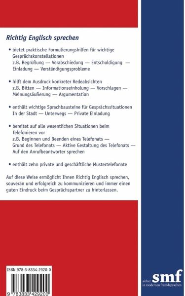 Um sich im persönlichen Gespräch und am Telefon flüssig auf Englisch zu verständigen, braucht man eine Fülle praktischer Formulierungshilfen. Dieses Nachschlagewerk bietet die wesentlichen Ausdrücke und Wendungen in Form von einfachen, leicht erlernbaren Sätzen. Man findet sprachliche Hilfen für gängige Gesprächskonstellationen, wie Begrüßung, Smalltalk, Entschuldigung, Einladung, Verständigungsprobleme. Auch für die wichtigsten Redeabsichten, wie das Äußern von Meinungen, das Ausdrücken von Freude oder Kritik, oder auch das sachliche Argumentieren bietet das Buch die passenden Ausdrucksmöglichkeiten an. Es enthält weiterhin wichtige Sprachbausteine für Gesprächssituationen in der Stadt, unterwegs und bei einer privaten Einladung. Auch das richtige Telefonieren ist kein Problem mehr. Das Buch enthält eine Fülle typischer Formulierungen für die gängigen Telefonsituationen, z.B. Beginnen und Beenden eines Telefonats, aktive Gestaltung des Telefonats, auf den Anrufbeantworter sprechen. Zehn private und geschäftliche Mustertelefonate von hohem praktischen Nutzen runden das Buch ab. Somit ermöglicht Ihnen Richtig Englisch sprechen, souverän und erfolgreich zu kommunizieren und immer einen guten Eindruck beim Gesprächspartner zu hinterlassen.