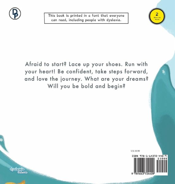 ***If this book is sold out or unavailable please visit MCP-STORE.COM*** This book is Dyslexic inclusive; it is printed in a font that everyone can read, including people with dyslexia. Afraid to start? Lace-up your shoes. Run with your heart! Be confident, take steps forward, and love the journey. What are your dreams? Will you be bold and begin? Level Learner Books # 2 Basic language, word repetition, and whimsical illustrations, ideal for sharing with your emergent reader. For more info about the font, go to www.Dyslexiefont.com Go to www.mcp-store.com to find out more about the typeface and discounts.