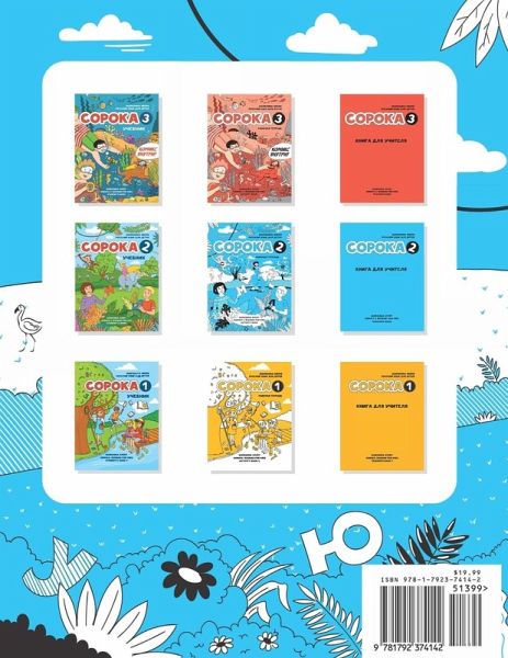Russian for Kids Soroka 2 Student's Book is the second part of Russian for Kids Soroka course. The course was created for children from 7 to 9 years old, but it can also be used to teach older people. Each level has a Student's Book; Activity Book; Teacher's Book in English and Russian languages; and free audio files. The main advantage of the Soroka course is that it is an advanced one and contains modern exercises, pictures and methods. In this Soroka 2 Student's Book we continue to study numbers from 11 to 100, topics such as appearance, houses, days of the week, going to the zoo, school suject. The direct method of teaching, which is based on the oral approach, makes learning more fun and comfortable as there is no need to study grammar rules specifically and then see how they work in practice. In the course, we work in a totally different way: We don't learn the names of the cases or things such as that; instead, we take ready-made phrases and learn how to apply them in speech. We immediately see the use of words and phrases and analyze them with examples later, if necessary.