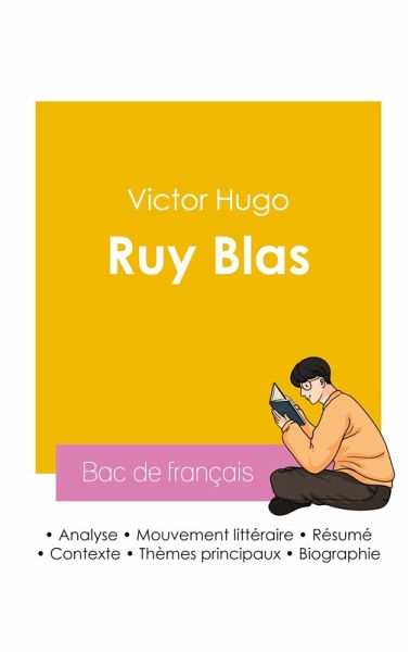 Réussissez votre bac de français 2026 grâce à notre fiche de lecture de la pièce de théâtre Ruy Blas de Victor Hugo ! Validée par un professeur de français du secondaire, cette analyse littéraire est une aide précieuse pour tous les lycéens. Grâce à notre travail éditorial, les points suivants n'auront plus aucun secret pour vous : la biographie de l'écrivain, le résumé du livre, l'étude de l'uvre, l'analyse des thèmes principaux à connaître et le mouvement littéraire auquel est rattaché l'auteur.